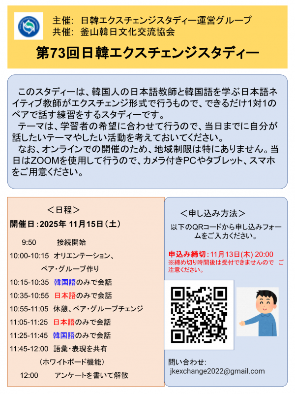 <第73回日韓エクスチェンジスタディー オンライン開催のお知らせ>
